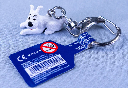 Moulinsart Toy Keyring: Snowy Lying Down 3.5cm Height 42436 Official Tintin Figure Key Ring