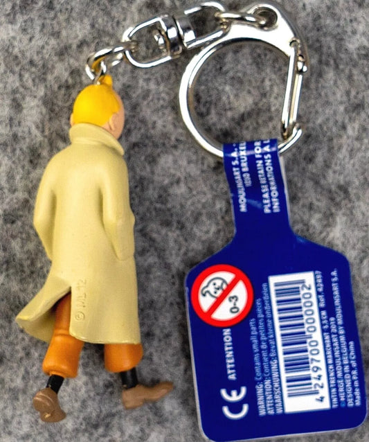 Moulinsart Toy Keyring: Tintin in Trench Coat 42497 5cm Height Official Tintin Figure Key Ring