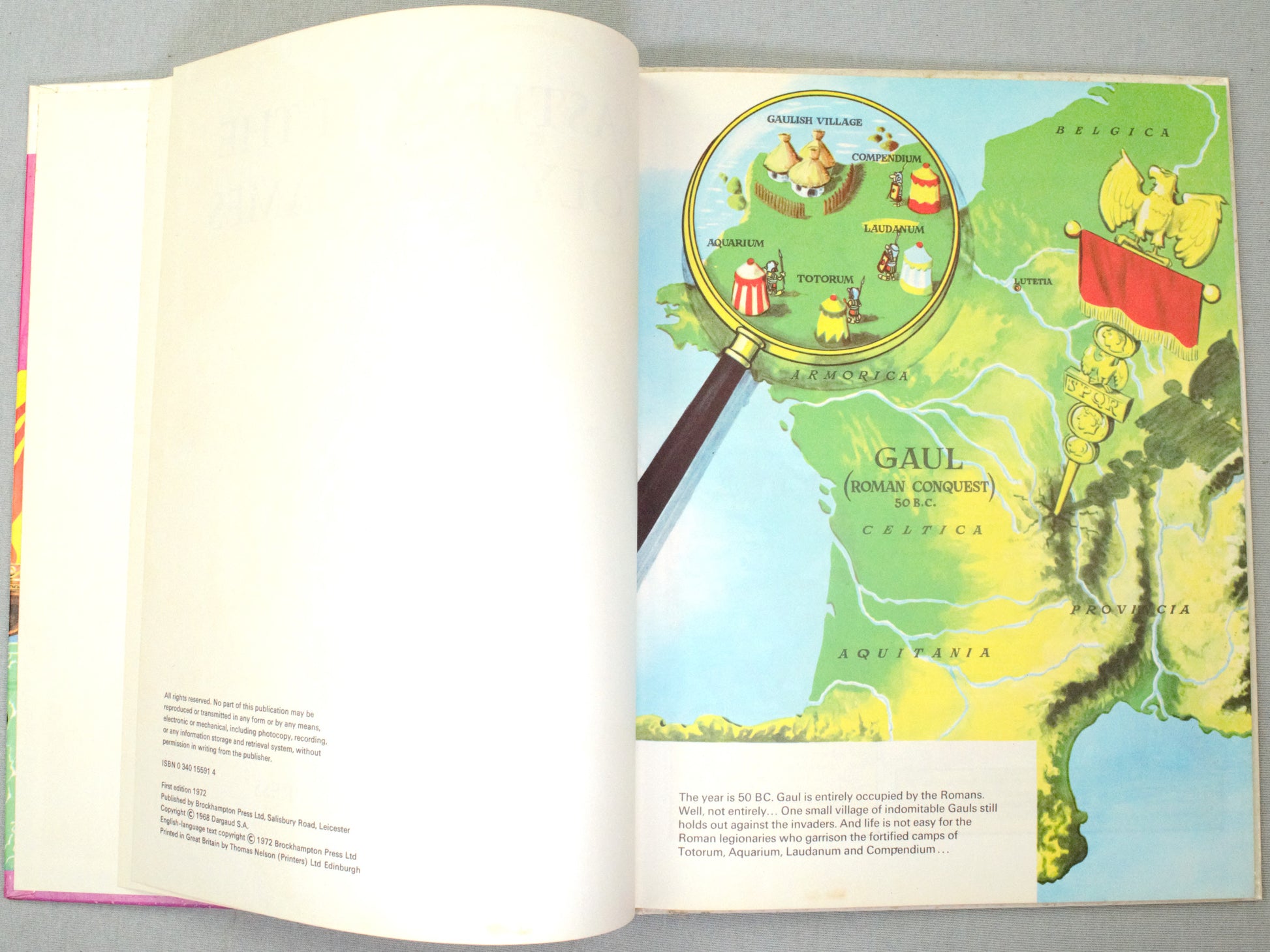 This is an original 1972 2nd UK Edition printed by Brockhampton. Rare and collectible Asterix book with original hardback binding. Rare Euro Comics like this are gaining in value right now due to scarcity and age.