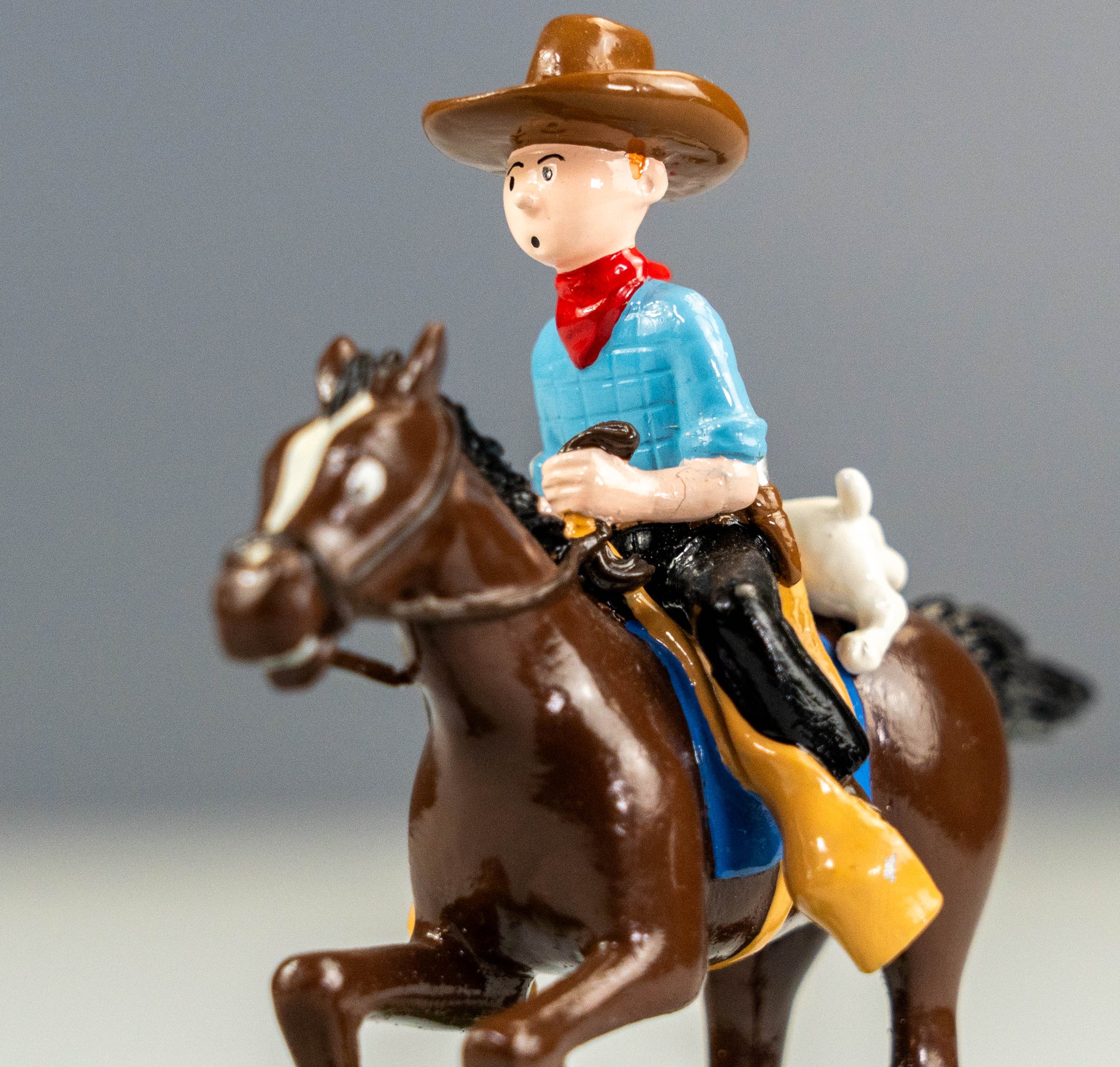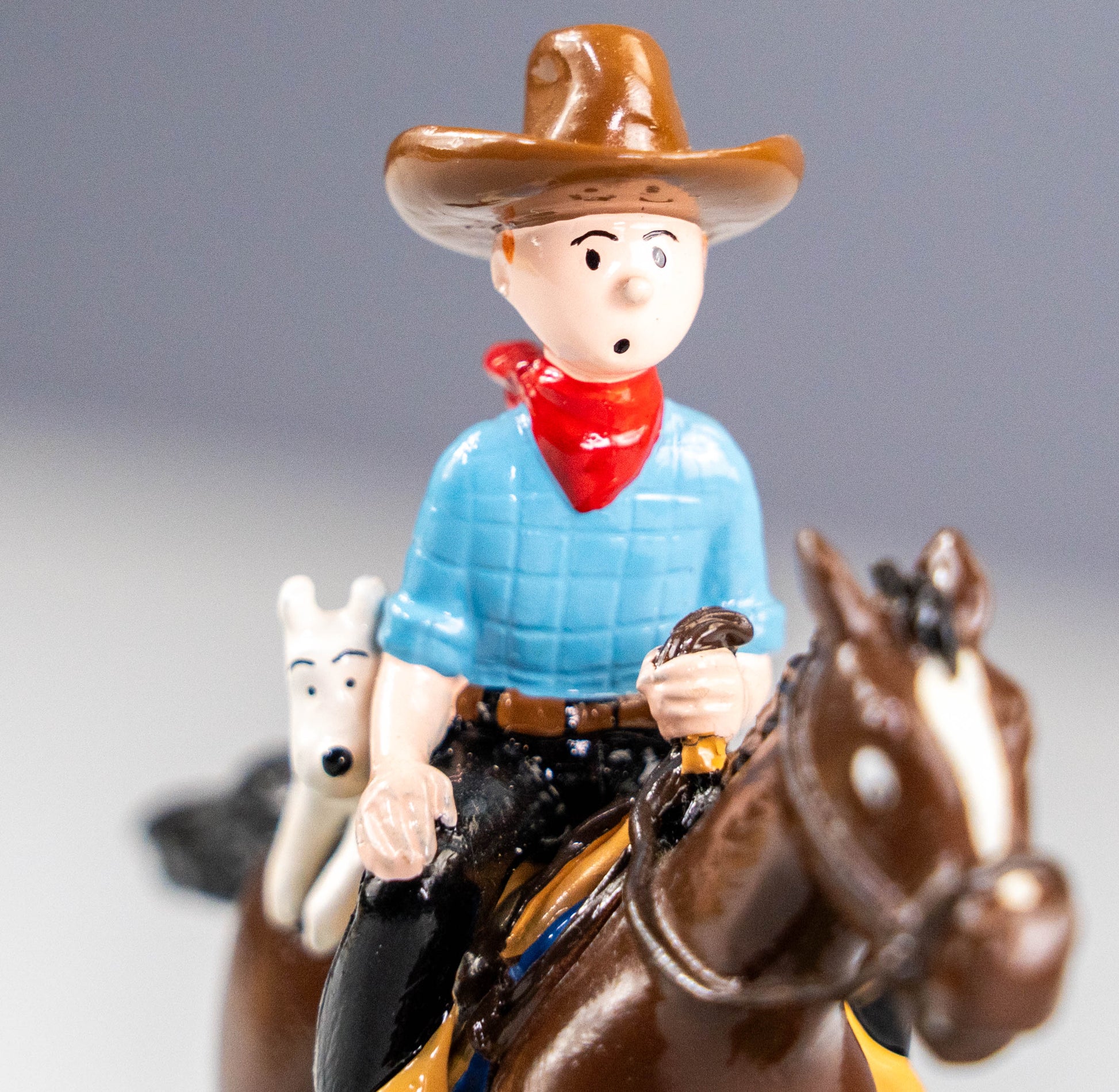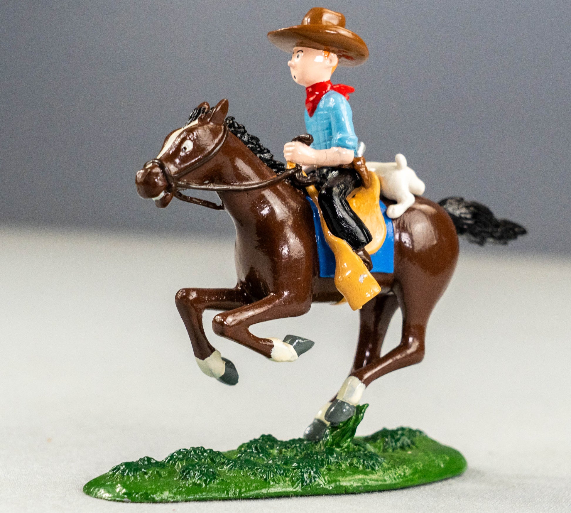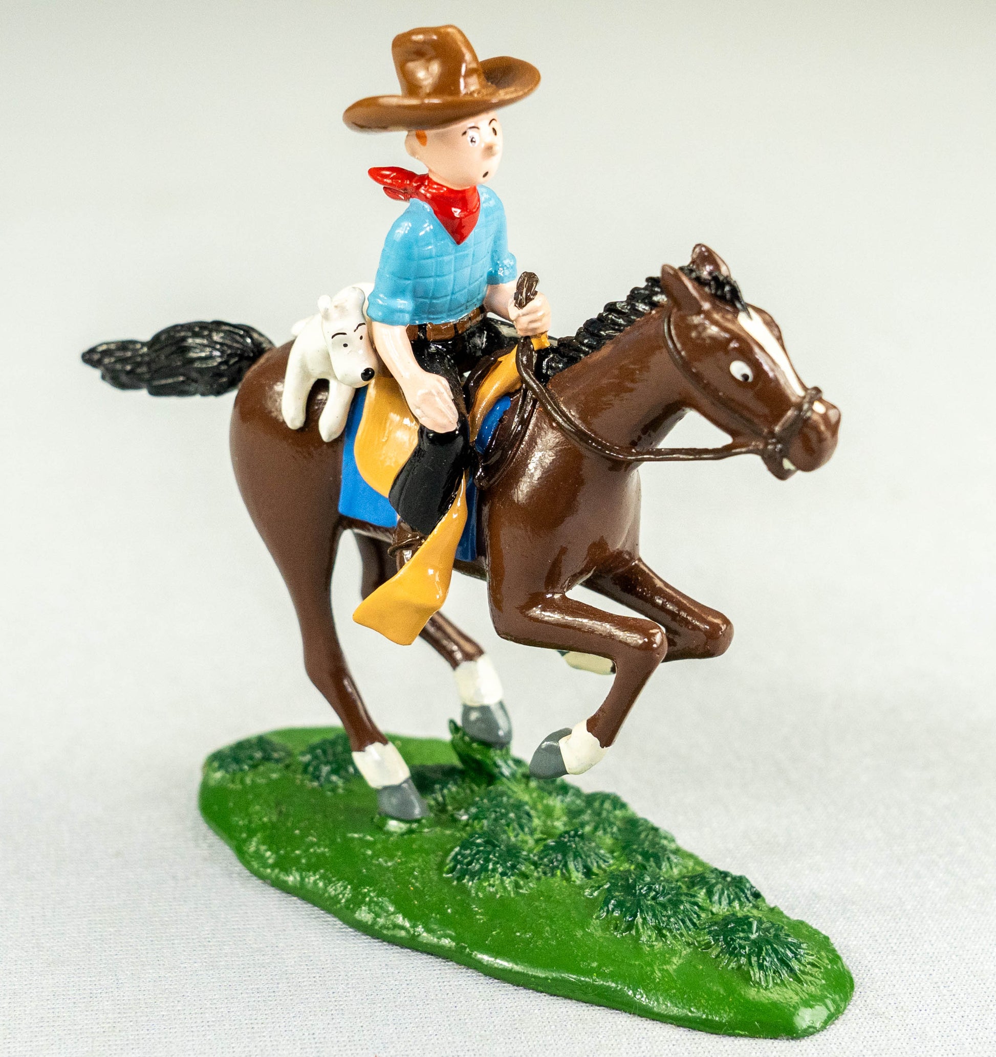 Brilliant Pixi model of Tintin & Snowy on horseback, a scene from Tintin in America. Exquisitely painted and made of solid lead, this rare numbered release by Pixi is very rare and sought after, with this being one of only 2,000 made. Rare Tintin items like this are gaining in value right now due to scarcity and age.
