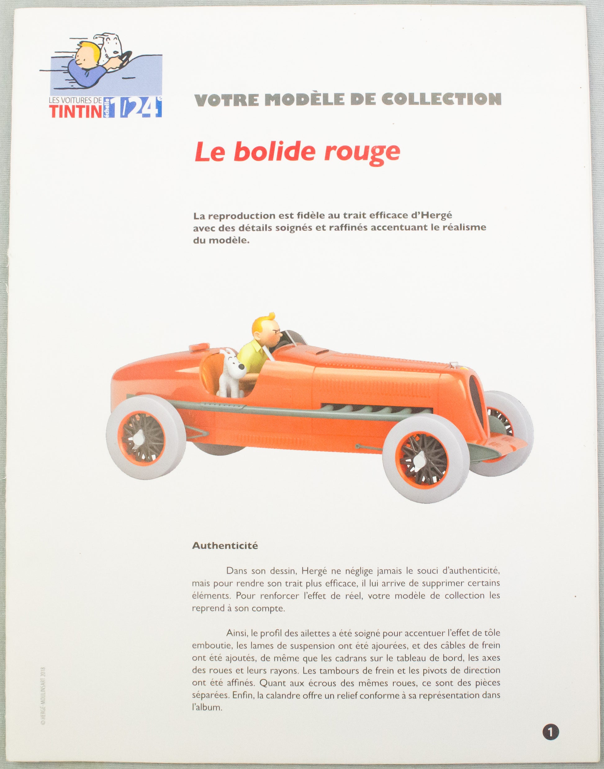 Hachette Tintin 1/24 Car #01 Le Bolide Rouge - Cigars Herge Vouiture Figure