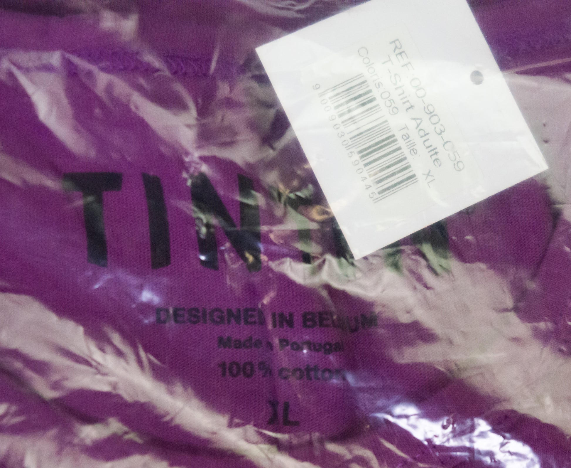 Moulinsart Tintin Face Adult T-Shirt: Purple/Yellow Cotton T Shirt S - 2X ML Hergé